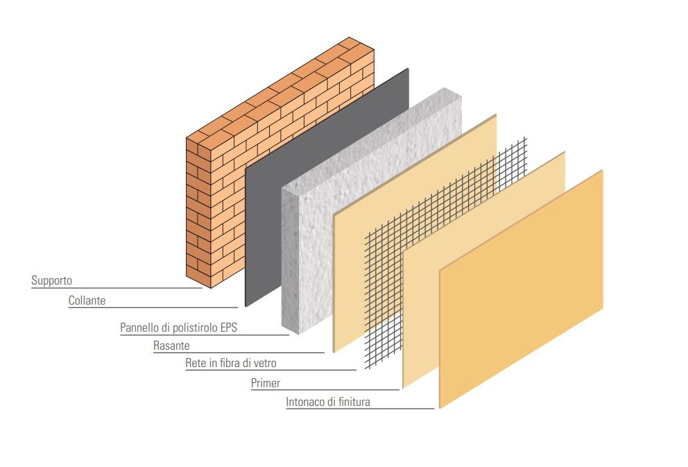 Sistema d’isolamento termico a cappotto con pannelli isolanti in EPS resistente a urti e grandine